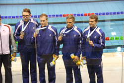 Davíð Aðalsteinsson, Kristófer Sigurðsson, Aron Stefánsson og Kristinn Þórarinsson unnu til silfurverðlauna í 4x100 m skriðsundi karla á tímanum 3:27,39 sek. Þeir settu þar með nýtt landsmet.