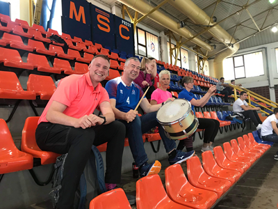 Starfsmaður ÍSÍ rakst á nokkra þeirra í blakhöllinni í morgun og fékk góðfúslegt leyfi til að taka af þeim myndir og birta hér á síðunni. Hjónin Einar Sigurðsson og Þórey Haraldsdóttir eru foreldrar Matthildar Einarsdóttur í landsliði kvenna í blaki og voru þau mætt í áhorfendastúkuna í blakhöllinni, ásamt Stefáni Jakobssyni föður Söru Óskar í sama liði. Voru þau vel útbúin með trommu til að ná fram meiri stemmningu í stuðningsmannahópinn. „Ég tók þátt í mörgum leikum sjálfur og nú er kominn tími til að fylgja næstu kynslóð,“ sagði Einar í samtali við starfsmann ÍSÍ áður en hann sneri sér að því að hvetja íslensku keppendurna áfram.