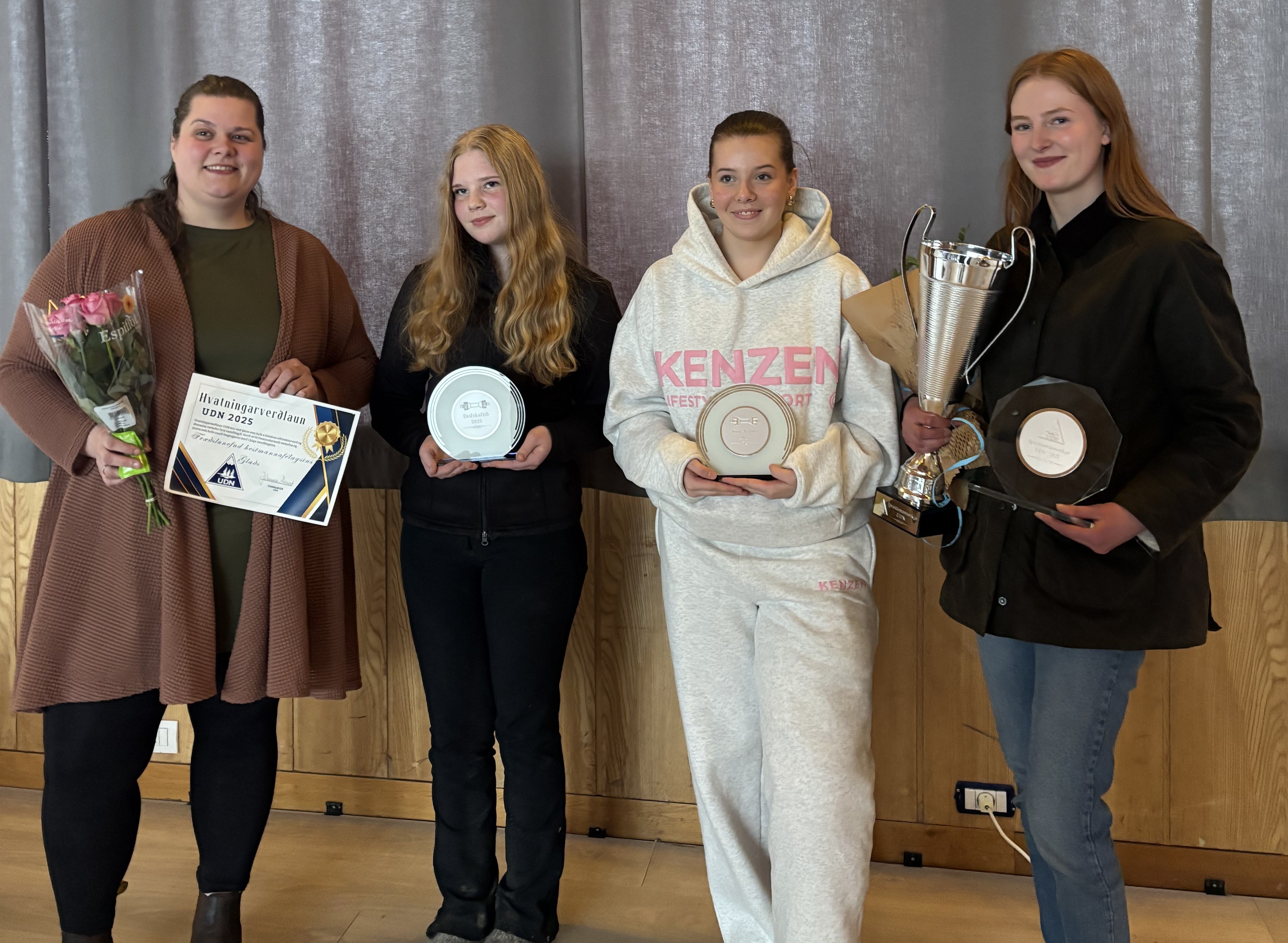 Tilkynnt var um Íþróttamanneskju UDN 2025 sem er Laufey Fríða Þórarinsdóttir. Hvatningarverðlaun UDN hlutu þau Ingibjörg Jóhannsdóttir, Guðmundur Kári Þorgrímsson og fræðslunefnd Hestamannafélagsins Glaðs. Drifskaftið - hvatningarverðlaun ungmenna 14 -16 ára, eru afhent ungmennum sem sinna íþrótt sinni vel, eru jákvæð og góðar fyrirmyndir. Drifskaftið að þessu sinni hlutu Lauga Björg Eggertsdóttir og Aðalheiður Rós Unnsteinsdóttir en báðar æfa þær hjá Hestamannafélaginu Glað.