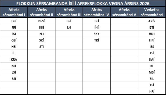 Að þessu sinni voru gerðar tvær breytingar á afreksflokkun sérsambanda vegna ársins 2026. Klifursamband Íslands færist úr flokki Afrekssérsambanda í flokk Verkefnasérsambanda og Taekwondosamband Íslands færist úr flokki Verkefnasérsambanda í flokk Afrekssérsambanda. Afrekssérsambönd eru 21 og Verkefnasérsambönd 12.